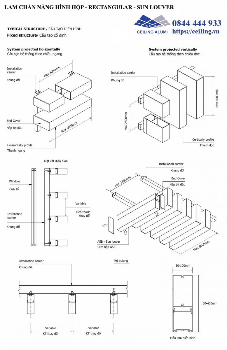 Lam chắn nắng hình hộp (Rectangular Sun Louver): là hệ thống các thanh lam có thiết kế hình hộp chữ nhật, được lắp đặt bên ngoài cửa sổ hoặc mặt tiền công trình. Sản phẩm này giúp chắn nắng, giảm nhiệt độ bên trong, đồng thời tạo điểm nhấn thẩm mỹ cho công trình.